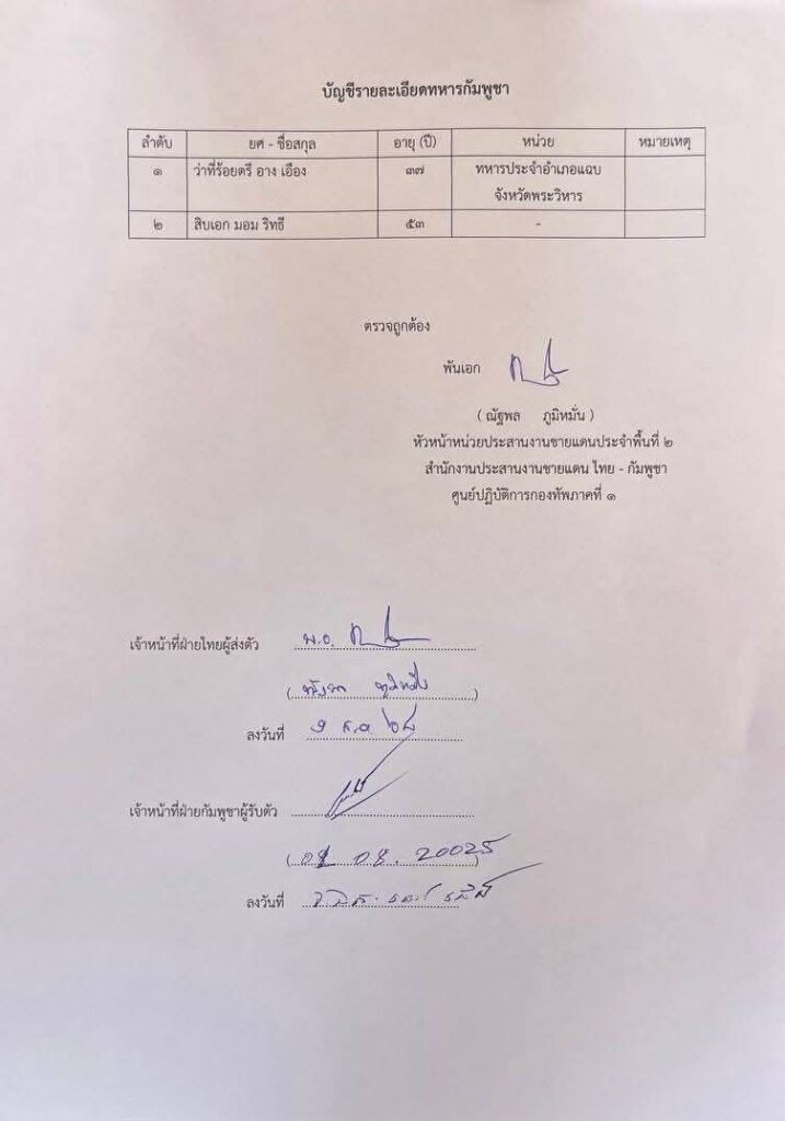 ១៦នាក់ទៀតដែល ទាហានសៀម មិនទាន់ប្រគល់មកឱ្យខ្មែរវិញគ្រប់ចំនួននោះទេដោយយកលេសថា បំពេញបែបបទ