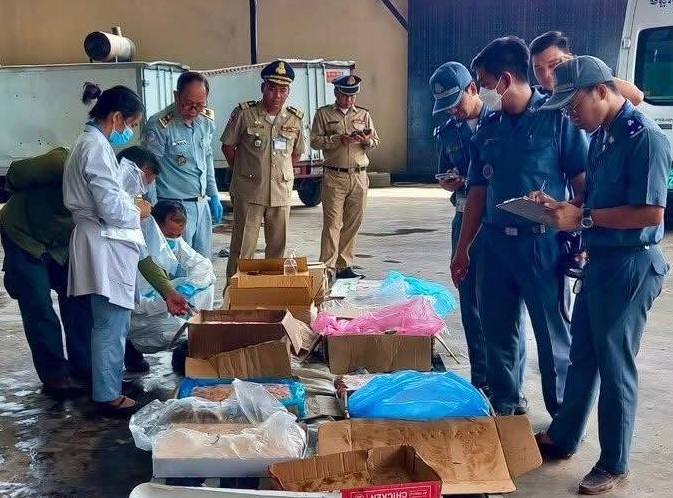 តុលា ឆ្នាំ២០២៥ បានចុះត្រួតពិនិត្យឃ្លាំង ចែទូច មួយកន្លែងទៀតដែលបាននាំ ជង្គង់មាន់ ស្លាបមាន់ និងជើងមាន់ មក