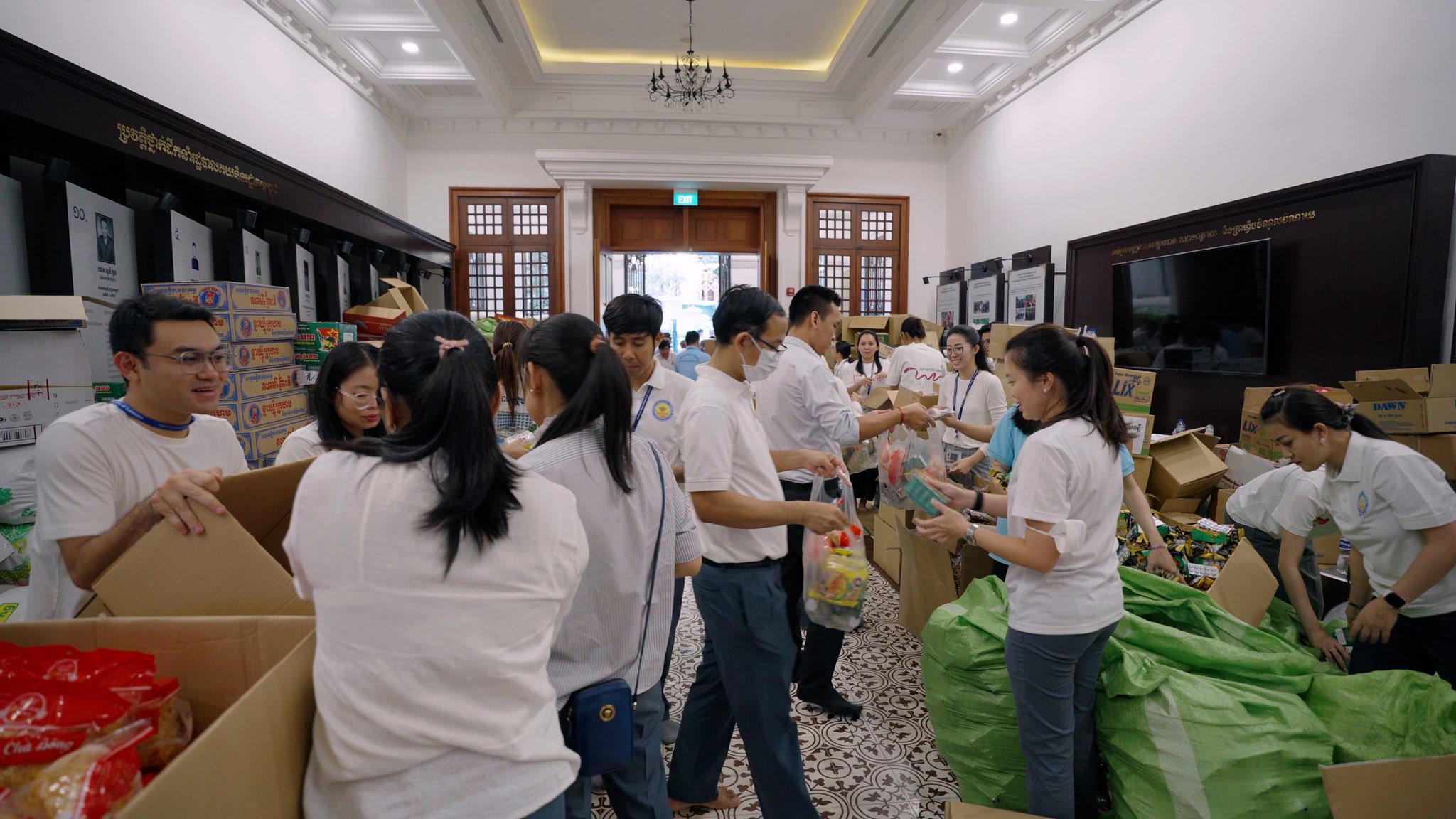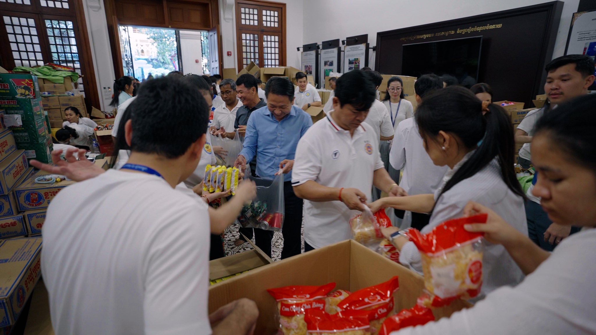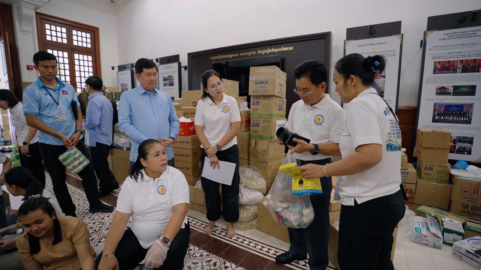 ភ្នំពេញៈ រយៈពេល៤ថ្ងៃគឺចាប់ថ្ងៃទី១៧ ដល់ទី២០ ខែធ្នូ នៅអគ្គនាយកដ្ឋានគយ និងរដ្ឋាករកម្ពុជា ឯកឧត្ដមបណ្ឌិត គុណ ញឹម រដ្ឋមន្ត្រីប្រតិភូអមនាយករដ្ឋមន្ត្រី អគ្គនាយកនៃអគ្គនាយកដ្ឋានគយ និងរដ្ឋាករកម្ពុជា និងជាប្រធានសមាគមសង្គហមិត្តមន្ដ្រីរាជការ នៃអគ្គនាយកដ្ឋានគយ និងរដ្ឋាករកម្ពុជា និងលោកជំទាវ ប៉ាន់ ត្រាប្រណី គុណ ញឹម បានដឹកនាំមន្ដ្រីគយ និងរដ្ឋាករ បុគ្គលិកជាប់កិច្ចសន្យា នៃអគ្គនាយកដ្ឋានគយ ព្រមទាំងជើងសាគយ បន្តរៀបចំវេចខ្ចប់អំណោយដ៏ថ្លៃថ្លារបស់ សម្តេចមហាបវរធិបតី ហ៊ុន ម៉ាណែត និងលោកជំទាវបណ្ឌិត ពេជ ចន្ទមុន្នី ហ៊ុន ម៉ាណែត សម្រាប់ត្រៀមយកទៅផ្ដល់ជូន វីរកងទ័ពជួរមុខ ដែលកំពុងឈរជើងប្រយុទ្ធយ៉ាងប្តូរផ្តាច់ក្នុងបុព្វហេតុការពារបូរណភាពទឹកដីនៃកម្ពុជា និងពលរដ្ឋភៀសសឹក ដោយសារអំពើឈ្លានពានយ៉ាងកម្រោលពីសំណាក់ យោធាថៃ។