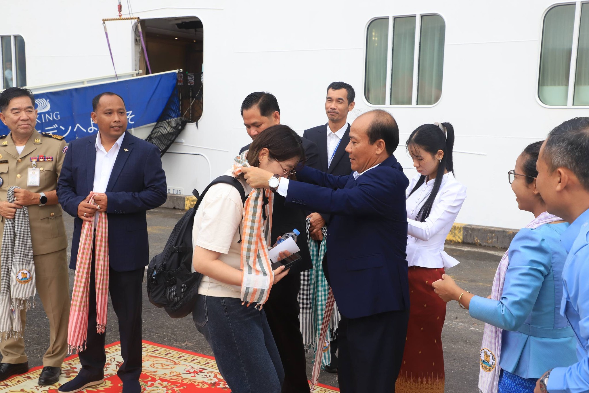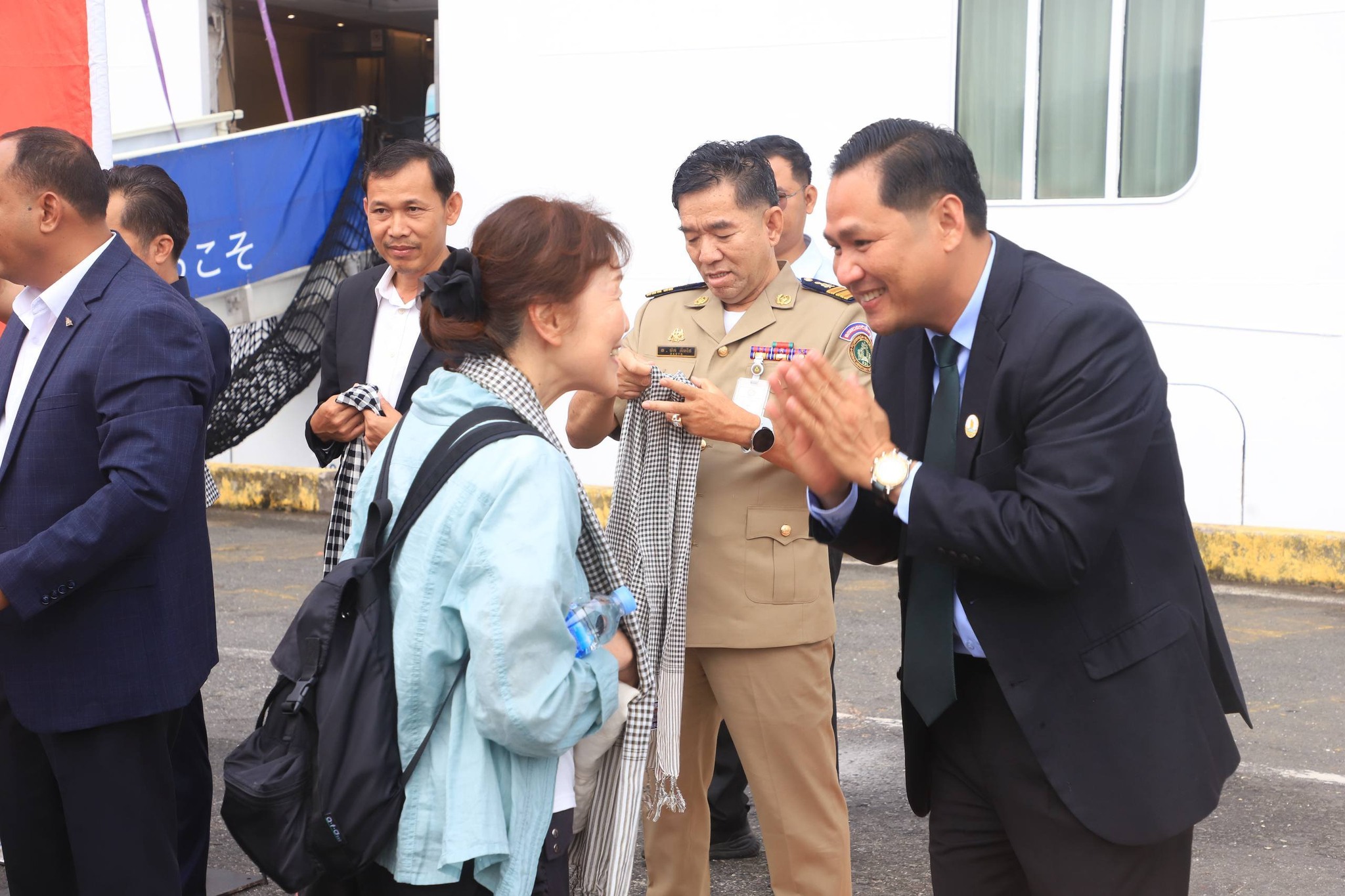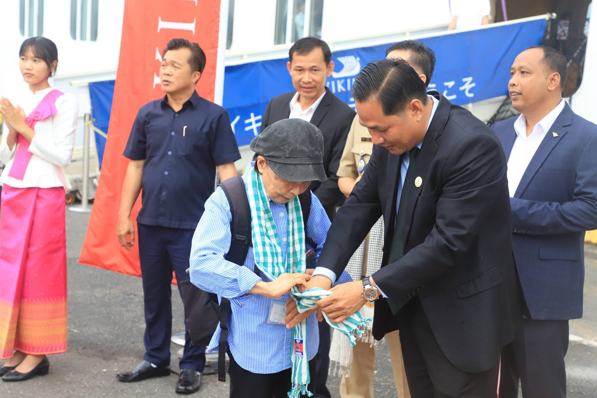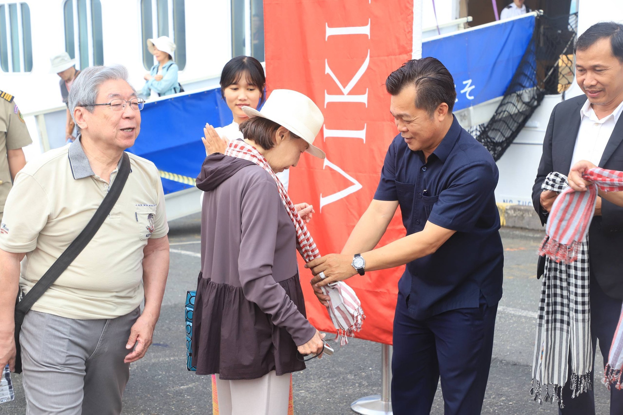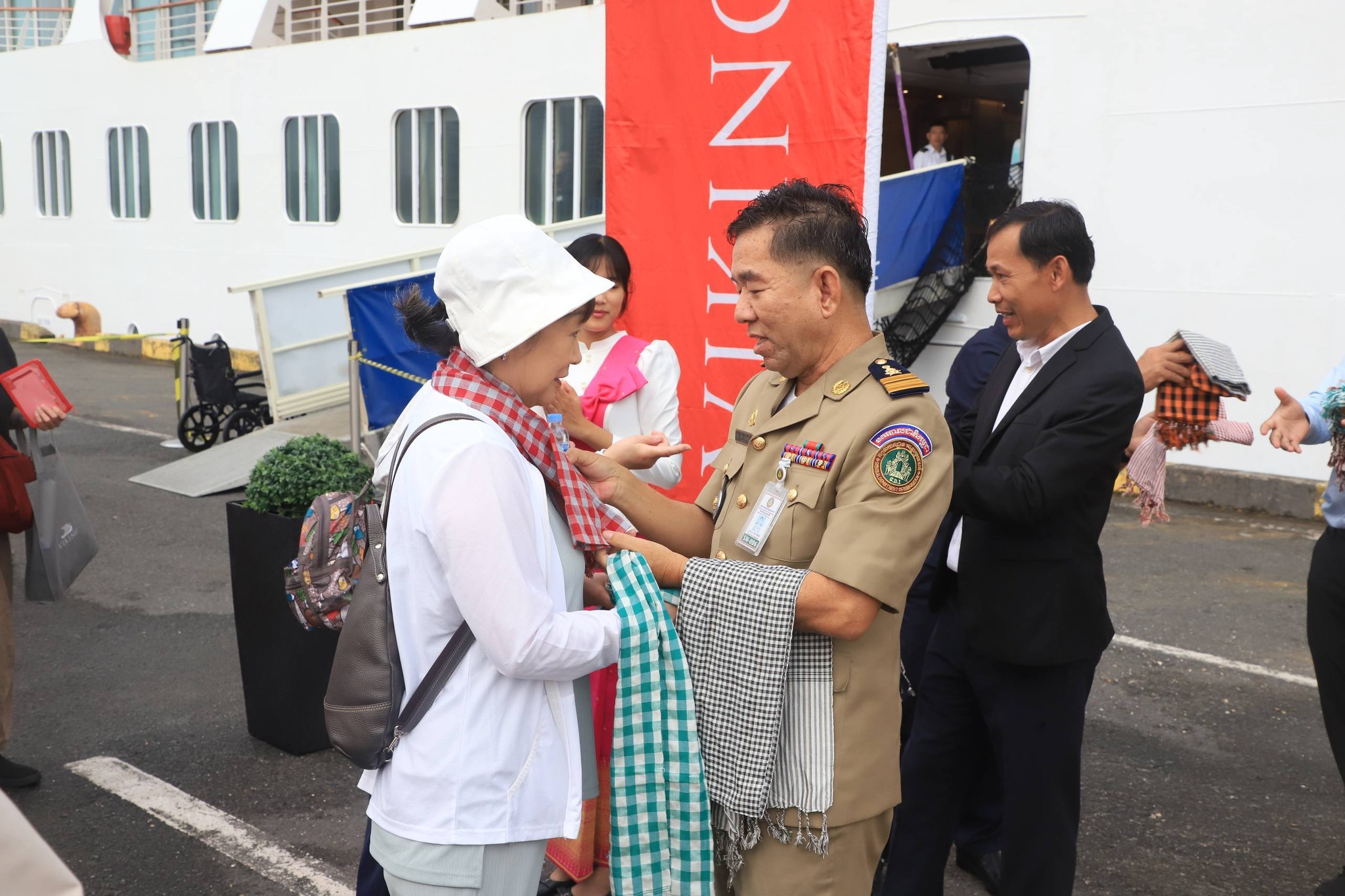ក្នុងឱកាសនោះ លោក សាមុត សុធារិទ្ធិ អភិបាលរងនៃគណៈអភិបាលខេត្តព្រះសីហនុ បានអញ្ជើញធ្វើការទទួលស្វាគមន៍ និងគារវកិច្ចយ៉ាងកក់ក្តៅចំពោះភ្ញៀវទេសចរទាំងអស់ ដែលបានអញ្ជើញមកទស្សនាខេត្តព្រះសីហនុ ព្រមទាំងបំពាក់ក្រមាជូនភ្ញៀវទុកជាវត្ថុអនុស្សាវរីយ៍ ដើម្បីបង្ហាញពីអធ្យាស្រ័យ និងវប្បធម៌បដិសណ្ឋារកិច្ចរបស់ប្រជាជនកម្ពុជា។