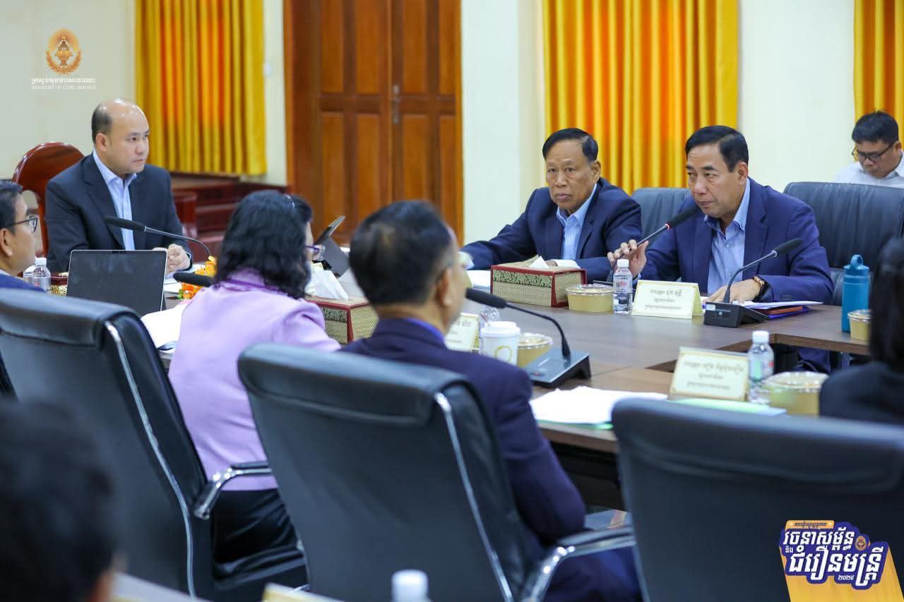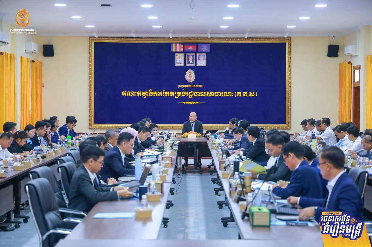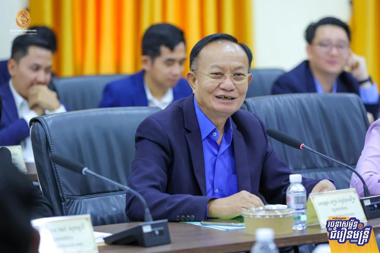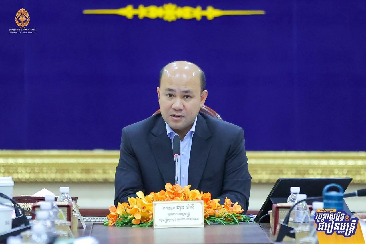 ដើម្បីដកស្រង់បទពិសោធពីការធ្វើជំរឿនមន្ត្រីជាក់ស្តែងនៅតាមរចនាសម្ព័ន្ធនៃអង្គភាពសុខាភិបាលមូលដ្ឋាន និងគ្រឹះស្ថានសិក្សាសាធារណៈ ស្ថិតក្នុងភូមិសាស្ត្ររាជធានីភ្នំពេញ សម្រាប់ជាមេរៀនក្នុងការធ្វើជំរឿនមន្ត្រីជាក់ស្តែងនៅតាមខេត្តទាំង២៤ នាពេលខាងមុខ ឯកឧត្តម ហ៊ុន ម៉ានី ឧបនាយករដ្ឋមន្ត្រី រដ្ឋមន្ត្រីក្រសួងមុខងារសាធារណៈ និងជាប្រធានគណៈកម្មការជំរឿន បានដឹកនាំកិច្ចប្រជុំពិនិត្យវាយតម្លៃការចុះធ្វើបច្ចុប្បន្នភាពរចនាសម្ព័ន្ធ និងជំរឿនមន្ត្រីជាក់ស្តែងនៅតាមរចនាសម្ព័ន្ធនៃគ្រឹះស្ថានសិក្សាសាធារណៈ និងអង្គភាពសុខាភិបាលមូលដ្ឋាន នៅរាជធានីភ្នំពេញ នារសៀលថ្ងៃទី២៤ ខែកម្ភៈ ឆ្នាំ២០២៦។