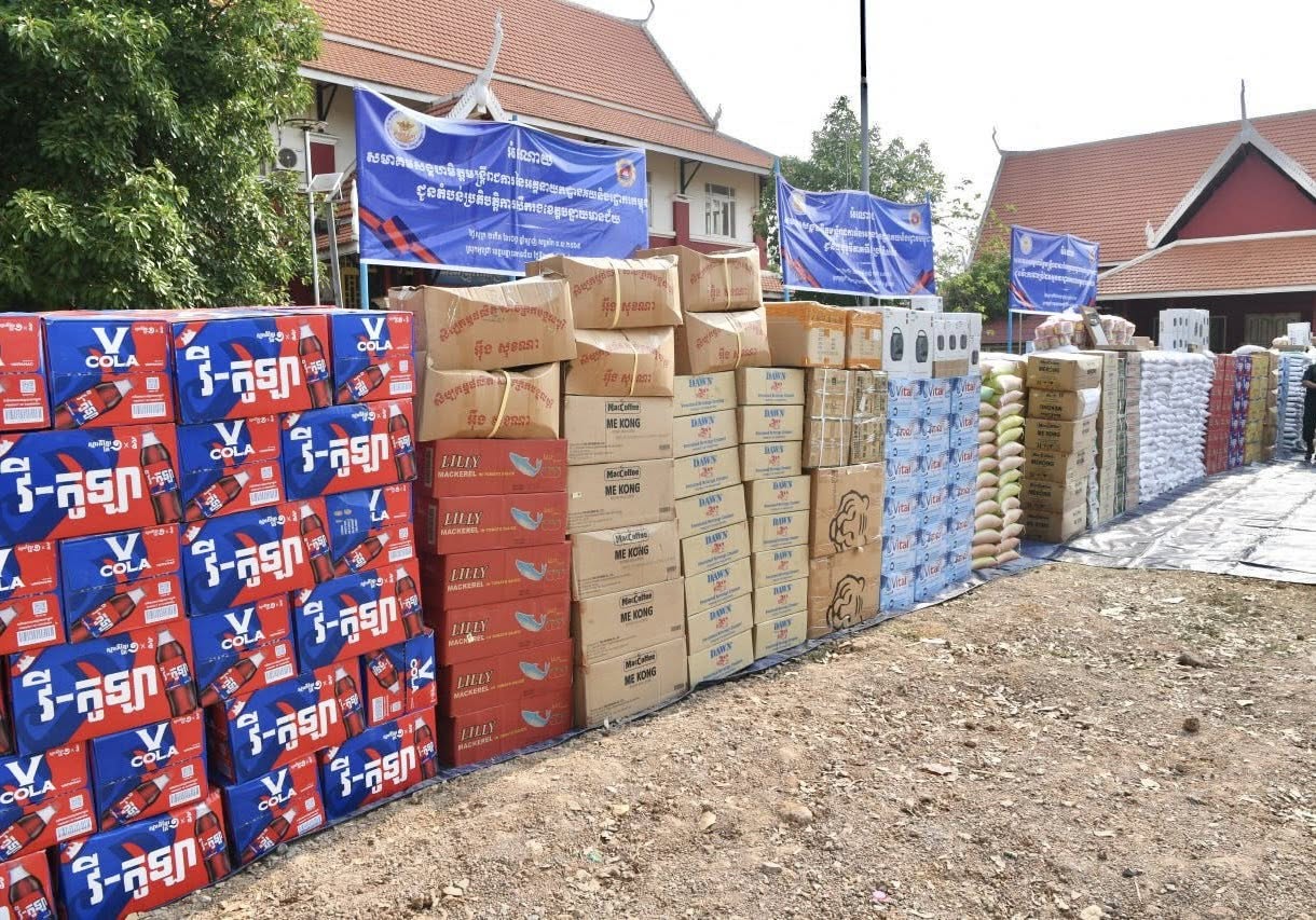 GLUCOSE ២៣៧កេស, បារី១១០ប៊ិច, ត្រីខ (១កេស ១០០កំប៉ុង) ៩០កេស, កញ្ចប់ច្រករួច (ទឹកត្រី១ដប ទឹកស៊ីអ៊ីវ១ដប ត្រីខ៥ កំប៉ុង) ៩០០កញ្ចប់, វីតាមីនជំនួយកម្លាំង Berocca ១៥កេស, ថ្នាំបំបាត់ការឈឺចាប់ Panamax ៤៦០០បន្ទះ, ទឹកក្រូច V-Cola ៦០០ml ២២០កេស, កាហ្វេ STARBUCKS ៥៥កេស, ទឹកដោះគោស្រស់ ១១០ml ៣០០កេស, កាហ្វេកញ្ចប់ 3 in 1 ២០កេស, អំបុក៣៩១៨ដប, បាយក្តាំង៣៤០កញ្ចប់តូច, ស្ករស (១គក្រ/កញ្ចប់) ១០០០កញ្ចប់, សាច់ផាត់២៥០ក្រាម ៩០កញ្ចប់, Solar Power Station ១០៦ឈុត, សាប៊ូលាងចាន (១កេស ២៤ដប) ៣០កេស, ចង្រ្កានហ្គាស៥០០គ្រឿង, កំប៉ុងហ្កាស៧០០កំប៉ុង, ទឹកសុទ្ធ vital ៥០០ml ២៩០កេស និងថវិកាចំនួន២០លានរៀល។