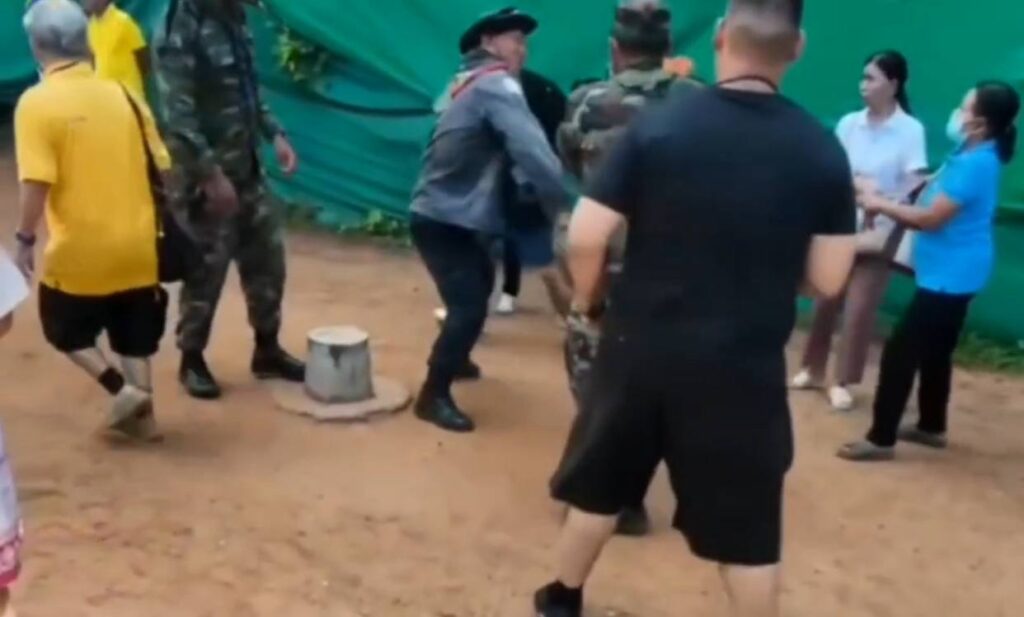 ពេលពួកគេមកសុំទាហានខ្មែរចាប់ដៃដែលកំពុងឈរជើងប្រចាំការនៅលើ ប្រាសាទតាមាន់ធំ ហើយពួកគេនាំគ្នារត់ទៅទឹកដី